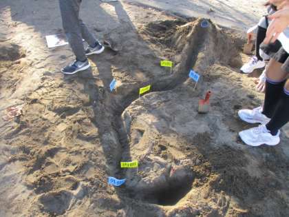 水が流れた時、川のカーブの様子はどうなるのか等、実験を行いました!