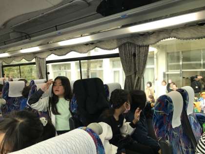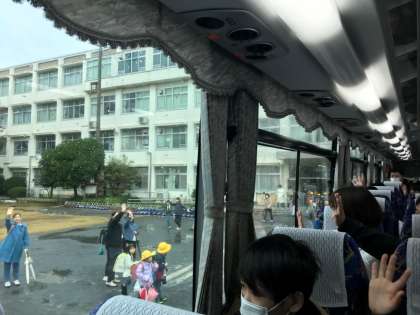 バスの車内から、見送ってくれている人たちに手を振りながら、笑顔で出発しました。