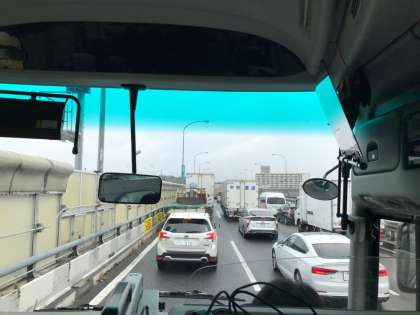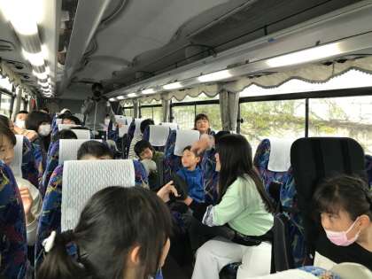 バスレクの様子です。私は誰でしょうクイズをやっています。高速は渋滞しています。