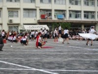 「タグラグビー」 チームごとに作戦を立て試合に臨んでいます。 相手を上手にかわす...
