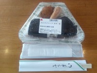昼食のおにぎり弁当です。この後は、楽しみにしていたソフトクリームとお土産購入です...