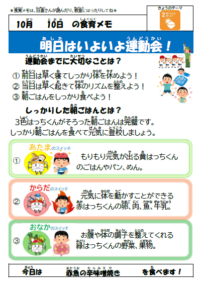 ☆きょうのこんだて☆ 10月10日(金)