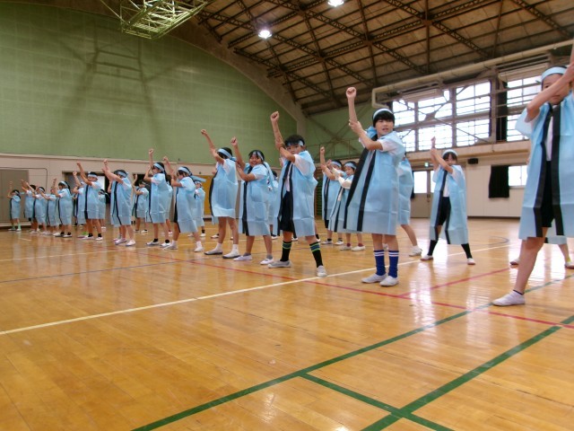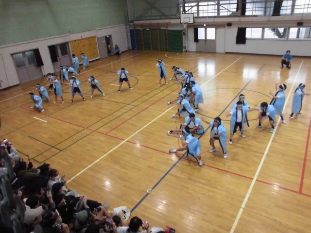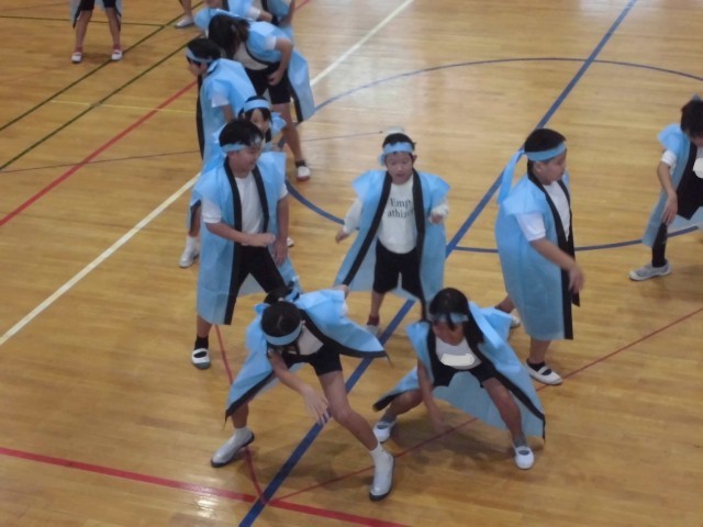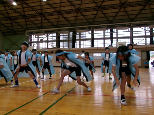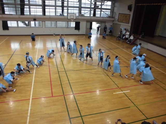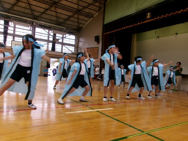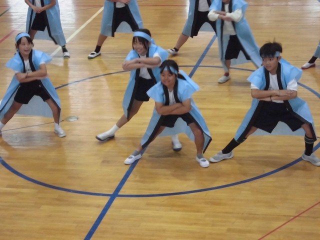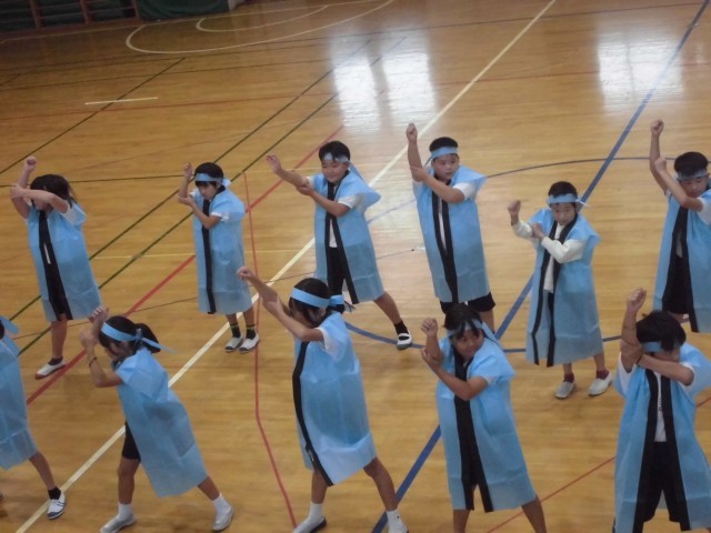 お揃いのハッピを着て、腰を落として精一杯踊りました。