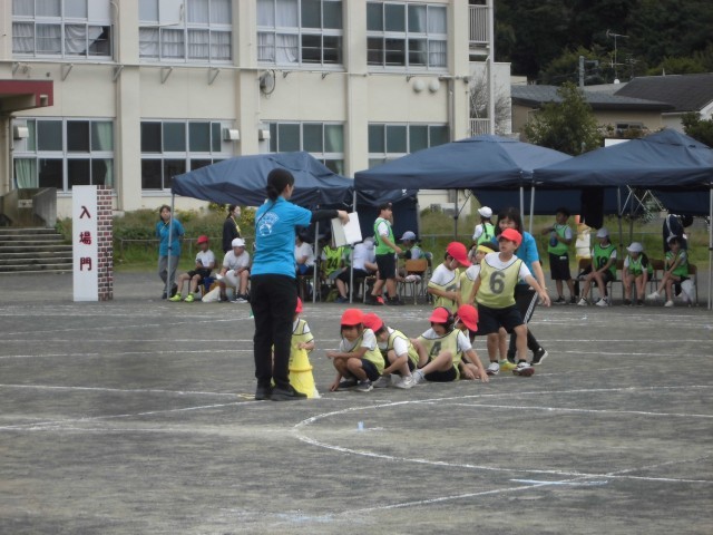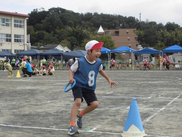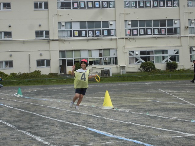 1、2年生は、丸いバトンでリレーをしました。