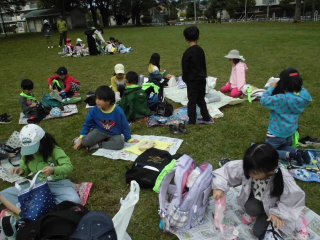 中田遺跡公園に移動して、お弁当を食べました。おうちの方が用意してくださったお弁当を