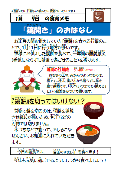 ☆きょうのこんだて☆ 1月9日(金)