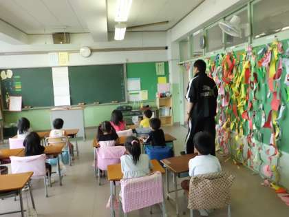 1年生の図工の授業からです。イタリア帰りの松野主幹が、幸せを呼ぶという黒ネコを題材にした授業を行いました。