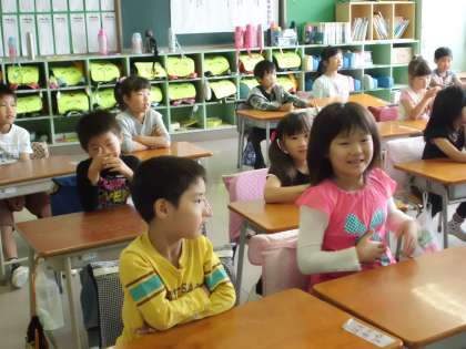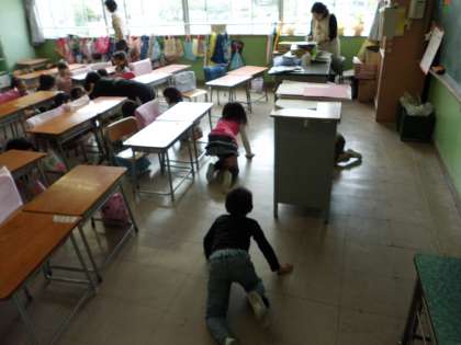 まずは、先生から魔法をかけてもらって、ネコの気分を味わいます。(犬になってしまった子もいたようでしたが)友達同士あいさつ、いえ、ネコ同士あいさつしたり、じゃれたりして、存分にネコの気持ちを味わいました。