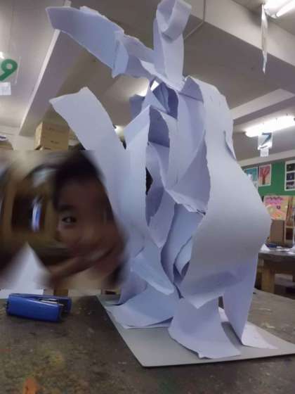 画用紙をビリびりっとやぶいて、