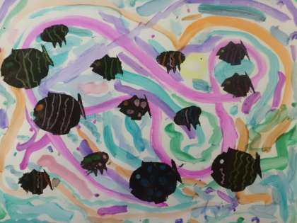 ステンシルをし、魚の模様も好きに考えました。