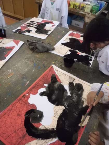 幸せを呼ぶ黒いねこ その1 1年図工