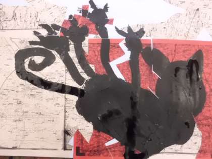 真っ黒な墨絵の具で描き始めます。