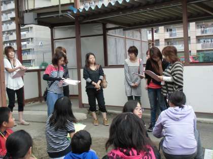 保護者のみなさんとあいさつをしたら、さあ出発です。