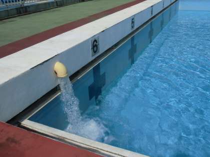 15日(金)から、水泳指導が始まります。天日干し、塗装の補修(業者ではなく主事さんが行ってくれました)も終わり、注水しています。