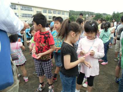 配り終えた後、欠席者の確認を教員がしています。