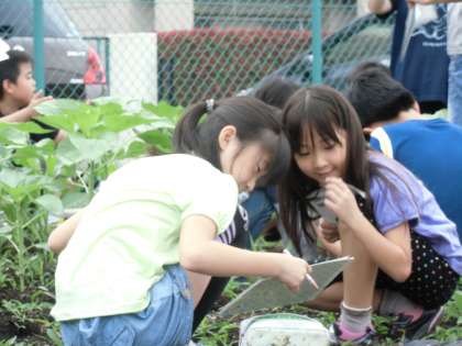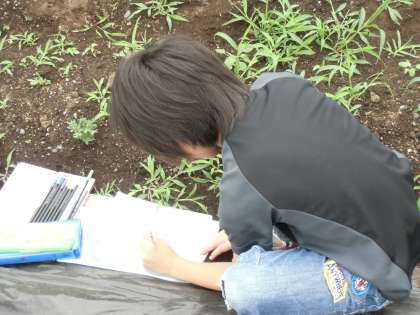 みんな、しっかり観察してスケッチしていました。葉っぱや茎をを手で触って感触を確かめたりしていました。見る・触る・嗅ぐ等大切な活動です。