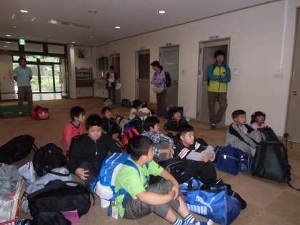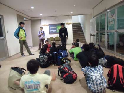 開校式、避難訓練、お風呂と自由時間、夕食、レクと続きます。