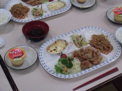 唐揚げ、焼きそば、プリンのデザート…と、子供や働き盛りの教員にはガッツリともりもり食べていました。おなか周りや検診の数値が気になる中高年には、考えながら食べないといけませんでした。
