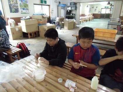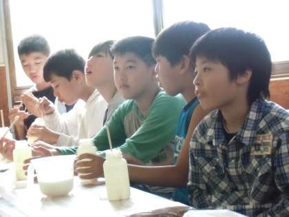 できたバターをクラッカーに乗せて食べてみます。「むむっ、おいしい」