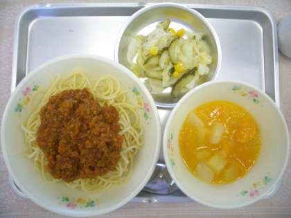 メニューの“スパゲティーミートソース”です♪久々のミートソースに、子