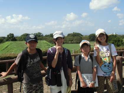 暑い中待っていると、次々にグループがやってきます。記念撮影です。