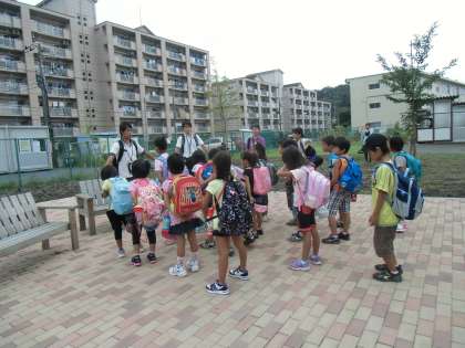 保護者のお見送りもあります。教員も見送ります。
