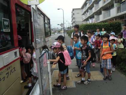 バスに乗るよ!一般のお客様から先に乗ってもらおう。