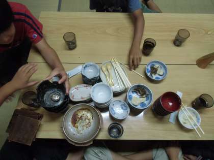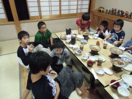17:57より晩ご飯が始められました。いや、よく食べること、食べること。
