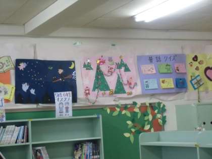 掲示を一新してもらいました。今日は読み聞かせも、ボランティアの方の協力でありました。図書委員会に児童も仕事をしています。