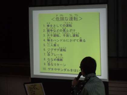 本校でも、もう一度交通ルール遵守の徹底を図るために、生活指導主任より全体指導を行いました。