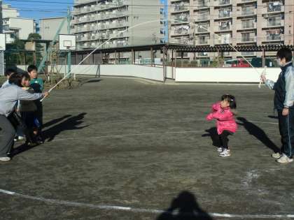 なわの揺れに合わせて、1年生も6年生も、自然と首をカックン、カックンさせてリズムをとっている様子が、なんともほほえましかったです。