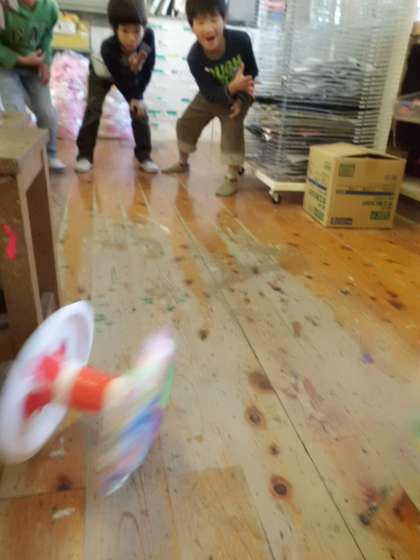 完成した子から自由に図工室で実験開始。