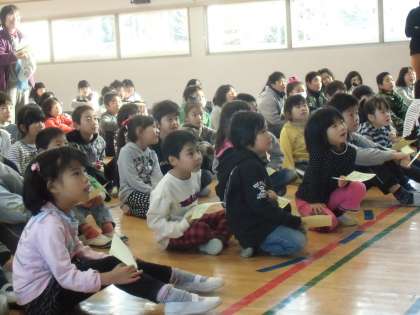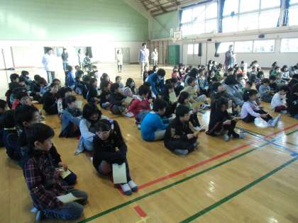 今日の児童集会は「中北年末ドリームジャンボ宝くじ集会」でした。