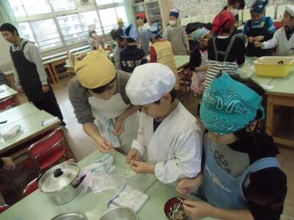 それぞれ役割を分担して時間内に調理しなければなりません。