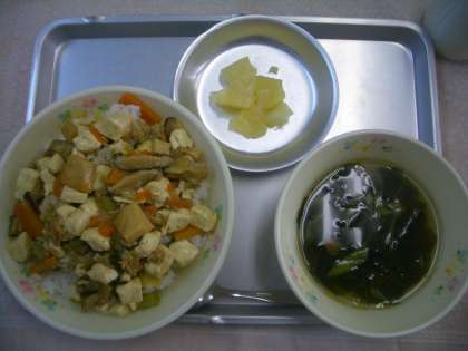 今日は、いつも残菜が少ない人気メニュー、“豆腐のうま煮”をカレー風味