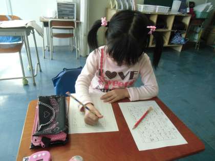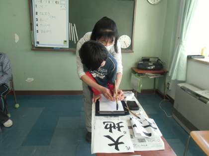 あさひ学級の子供たちが、書き初めの練習を始めました。2年生は硬筆、他の子供たちは毛筆での練習です。