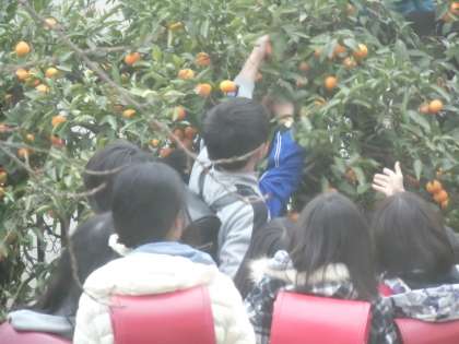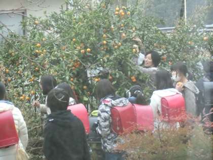 小学校生活で最後のミカン狩りです。甘いミカンを持ち帰ることができたのでしょうか。
