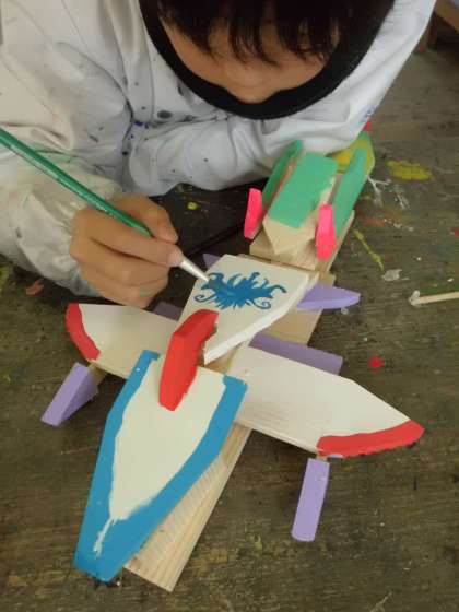今日の5年生は、いよいよカッコイイ色塗りです。
