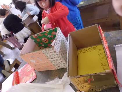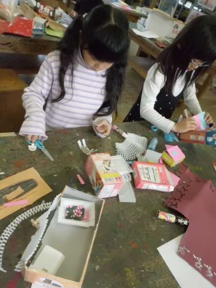 空き箱を自分の住みたい家に見立てて、