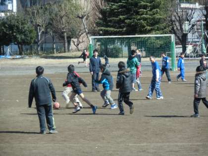 風は冷たいものの、すっかりとけて乾いてしまいました。いつもの校庭です。