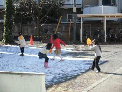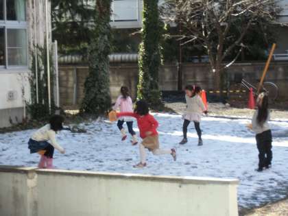 校舎の影に残っている雪でプチ雪合戦をしてみたり、芝生の上でひなたぼっこをしてみたり、好きなように過ごす昼休みでした。