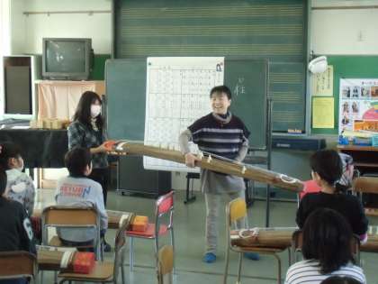 外部講師による箏の体験授業を行いました。今日は4年生が2時間行いました。