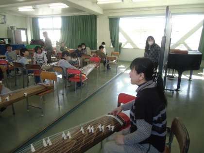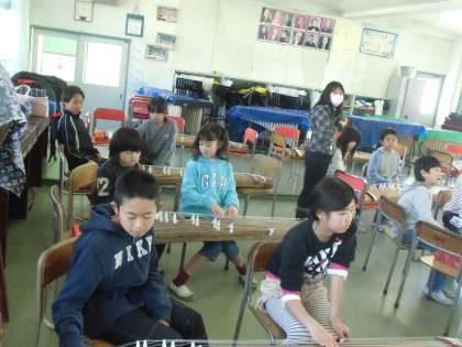 「さくら さくら」に挑戦です。まずは、つめを使って糸のはじき方からです。