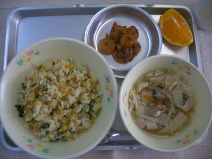 今日は中華の日♪中華はいつも人気です。今日のチャーハンは、豚肉・