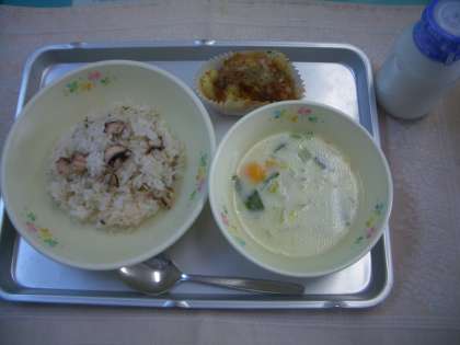 今日はたてわり班給食ということで、いつもと違うメンバーでの給食は、