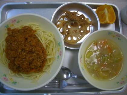 一品☆今日も大変喜ばれました♪中野北小での最後のミートソースの味、