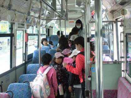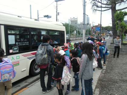 お天気が心配でしたが、今日は引率が副校長だから心配は無い…という声が。今はいい天気で暑いぐらいです。今年から目的地を変更して、経路もバスを使ってとなりました。