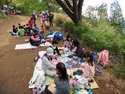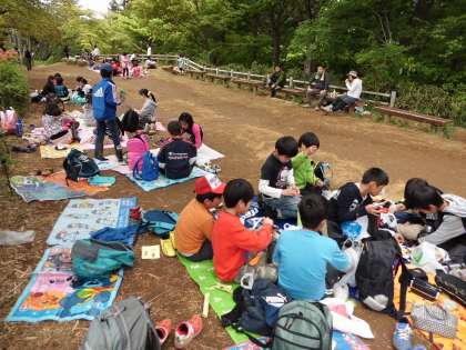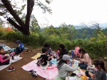 見晴らしは最高でしたが、みんなはお弁当とおやつに夢中でした。