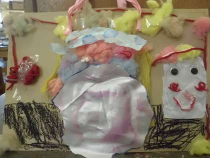 布や毛糸、クレヨンも使って工夫して完成です。