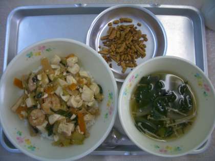 今日は具だくさんの海鮮豆腐がのった、「海鮮豆腐丼」です☆ごはんも